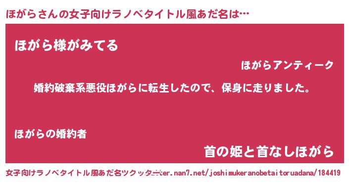 男性向けラノベタイトル風あだ名 | 『ホガラスレイヤー』 |