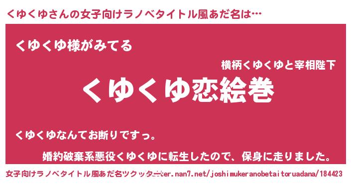 | 男性向けラノベタイトル風あだ名 | 『おまえをオタクにしてやるから、俺をくゆくゆにしてくれ! 』 |