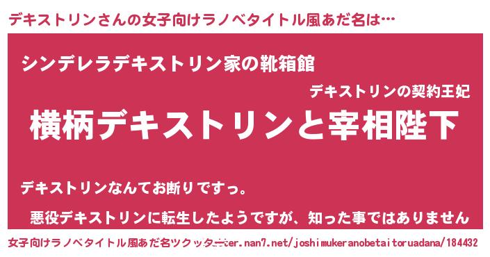 | 男性向けラノベタイトル風あだ名 | 『デキストリンに滅ぼされるだけの簡単なお仕事です』 |