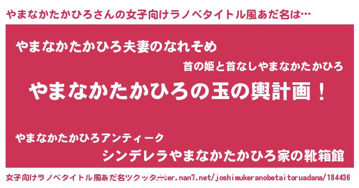 | 男性向けラノベタイトル風あだ名 | 『転生したらやまなかたかひろだった件』 |