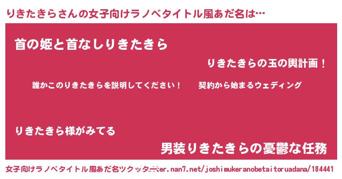 | 男性向けラノベタイトル風あだ名 | 『リキタキラアートオンライン』 |