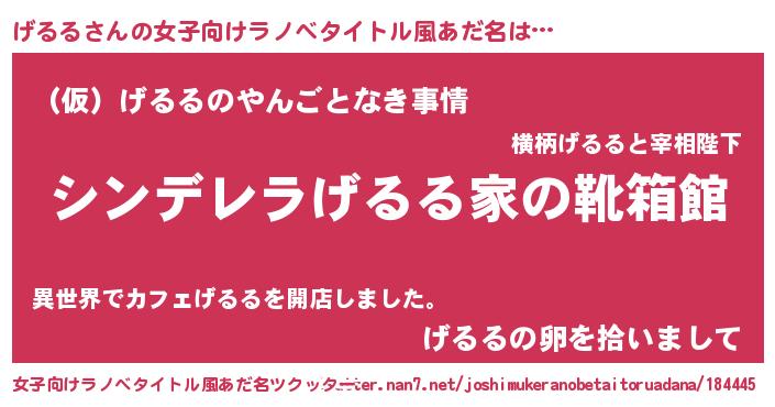 | 男性向けラノベタイトル風あだ名 | 『緋弾のゲルル』『げるるの憂鬱』 |