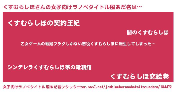 | 男性向けラノベタイトル風あだ名 | 『この素晴らしい世界にくすむらしほを!』 |