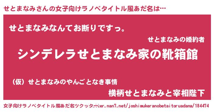 | 男性向けラノベタイトル風あだ名 | 『緋弾のセトマナミ』『せとまなみの憂鬱』 |