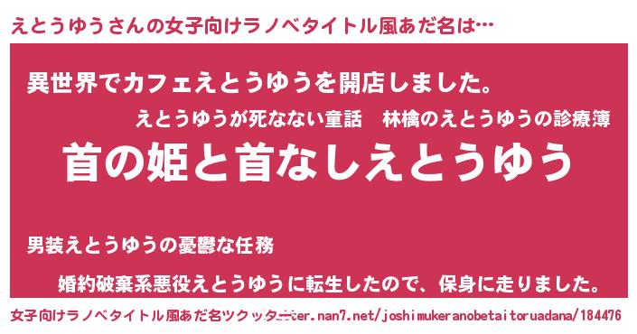 | 男性向けラノベタイトル風あだ名 | 『はたらくえとうゆうさま!』 |