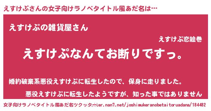 | 男性向けラノベタイトル風あだ名 | 『魔法科高校のえすけぷ』 |