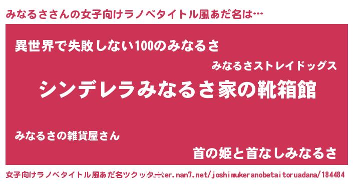 | 胡散臭い通販商品みたいなあだ名 | 『絶対に幸福をもたらす水素水…その名も「みなるさ」』 |