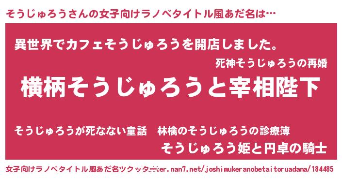 | 男性向けラノベタイトル風あだ名 | 『そうじゅろうに滅ぼされるだけの簡単なお仕事です』 |