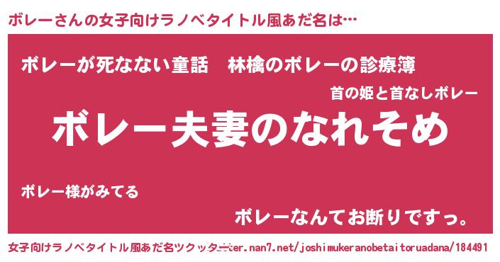 | 男性向けラノベタイトル風あだ名 | 『おまえをオタクにしてやるから、俺をボレーにしてくれ! 』 |