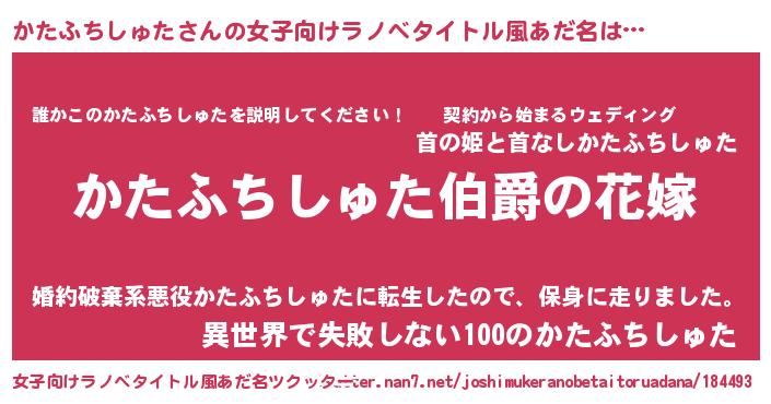 | 肩書あだ名 | 『かたふちしゅた大統領』 |