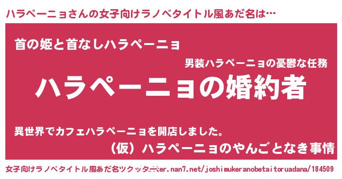 | ファンタジー風あだ名 | 『エターナルハラペーニョー』 |