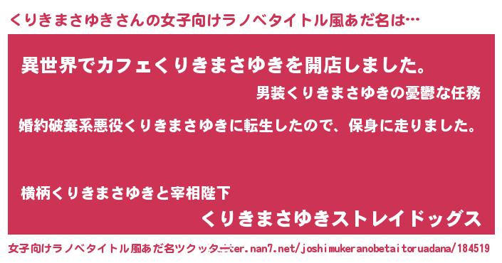 | 男性向けラノベタイトル風あだ名 | 『転生したらくりきまさゆきだった件』 |