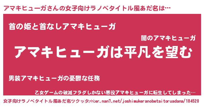 | 胡散臭い通販商品みたいなあだ名 | 『信頼と実績のサプリメント…その名も「アマキヒューガ」』 |