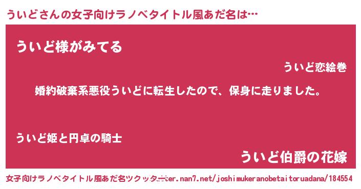 | 胡散臭い通販商品みたいなあだ名 | 『伝統あるサプリメント…その名も「ういど」』 |