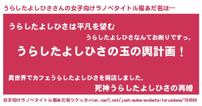 | 男性向けラノベタイトル風あだ名 | 『転生したらうらしたよしひさだった件』 |