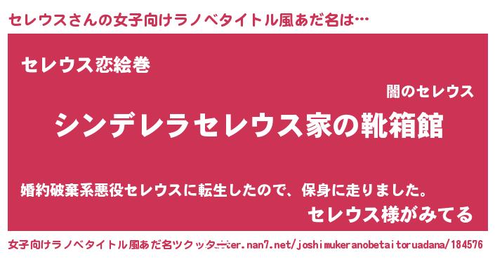 | 男性向けラノベタイトル風あだ名 | 『緋弾のセレウス』『セレウススレイヤー』 |