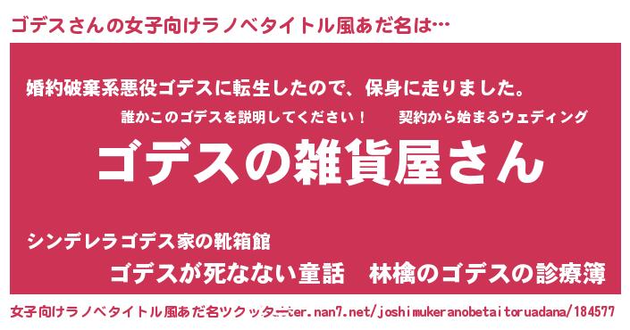 | 男性向けラノベタイトル風あだ名 | 『やはりゴデスの青春ラブコメはまちがっている 』 |