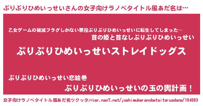 | 意味不明あだ名 | 『自称ぷりぷりひめいっせい』 |