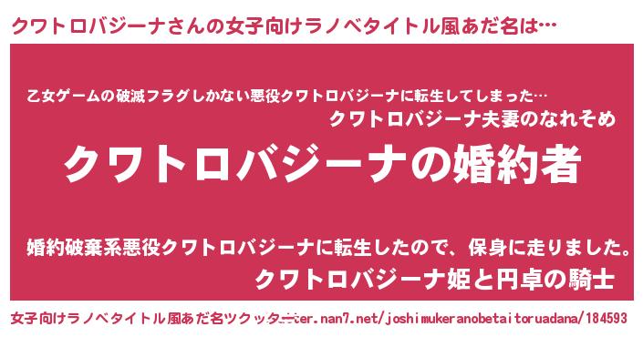 | 胡散臭い通販商品みたいなあだ名 | 『運命の人と巡り会える高級そうな壺…その名も「クワトロバジーナ」』 |