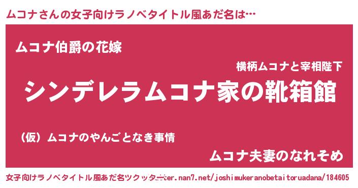 | 意味不明あだ名 | 『ムコナフォーエバー』『ペロリンムコナ』 |