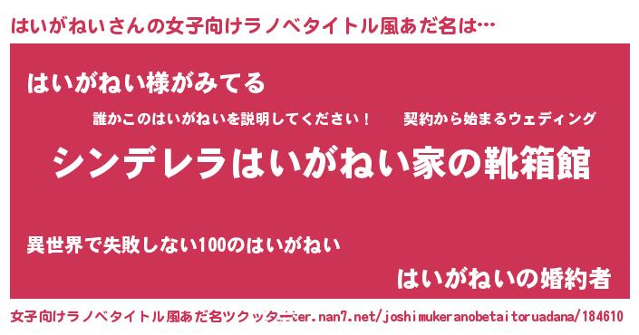 | 胡散臭い通販商品みたいなあだ名 | 『伝統あるペンダント…その名も「はいがねい」』 |