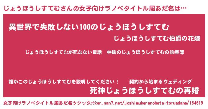 | 意味不明あだ名 | 『住所不定無職じょうほうしすてむ(62歳)』 |