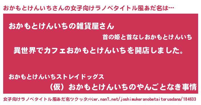 | 男性向けラノベタイトル風あだ名 | 『誰もが恐れるあのおかもとけんいちが、ぼくの専属メイドになるようです。』 |