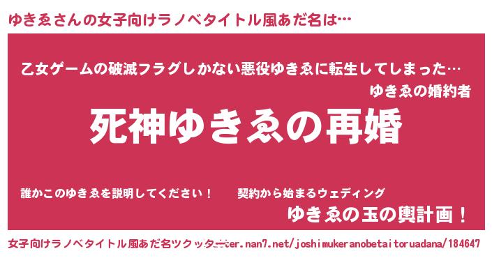 | 男性向けラノベタイトル風あだ名 | 『ノーゲーム・ノーユキヱ』 |
