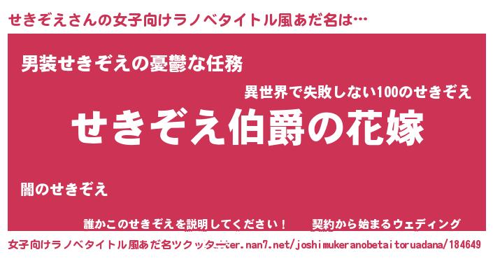 | 男性向けラノベタイトル風あだ名 | 『やはりせきぞえの青春ラブコメはまちがっている 』 |