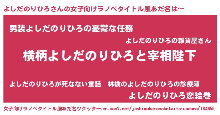 | 男性向けラノベタイトル風あだ名 | 『よしだのりひろに滅ぼされるだけの簡単なお仕事です』 |