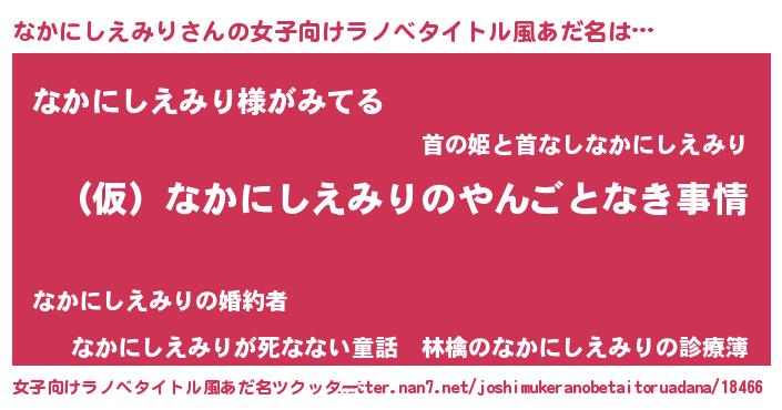 | 男性向けラノベタイトル風あだ名 | 『なかにしえみりの憂鬱』 |