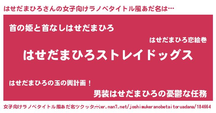 | 男性向けラノベタイトル風あだ名 | 『Re:はせだまひろから始める異世界生活』 |