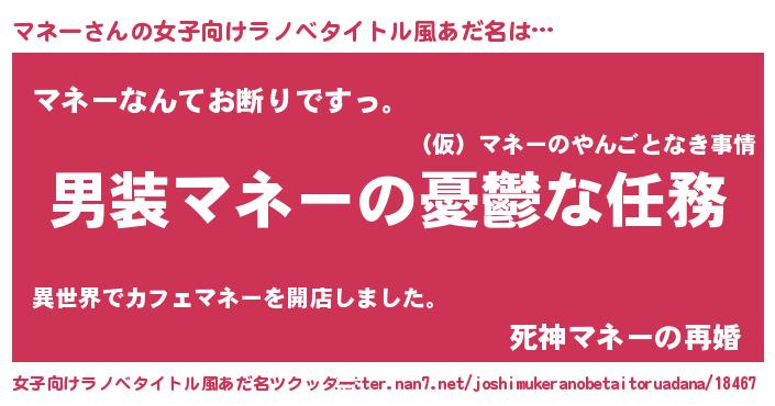 | 男性向けラノベタイトル風あだ名 | 『うちのマネーが世界を掌握している!』 |