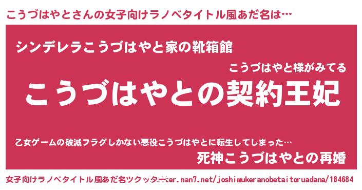 | 男性向けラノベタイトル風あだ名 | 『こうづはやとという概念が存在しない退屈な世界 』 |