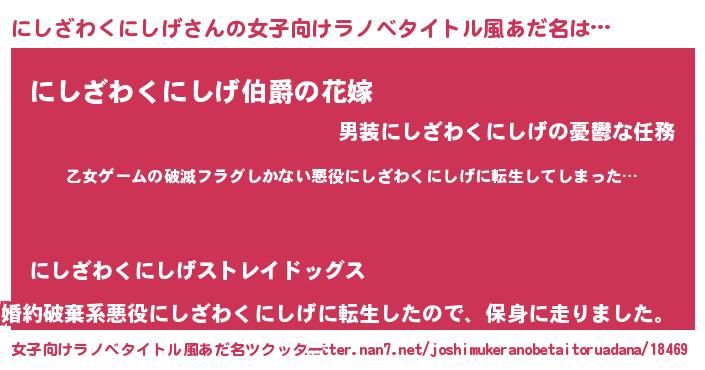 | 意味不明あだ名 | 『住所不定無職にしざわくにしげ(3歳)』 |