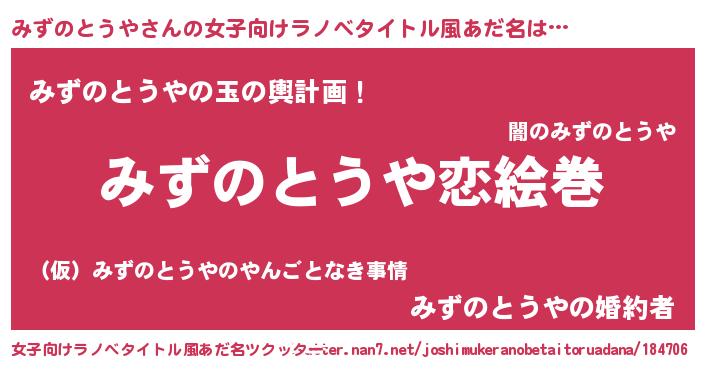 | ヘコむあだ名 | 『豆乳』『みずふぇ~』『みずっちょ』 |