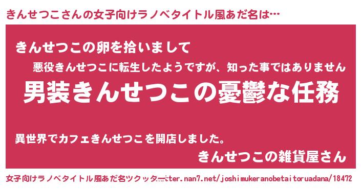 | 男性向けラノベタイトル風あだ名 | 『うちのきんせつこが世界を掌握している!』 |