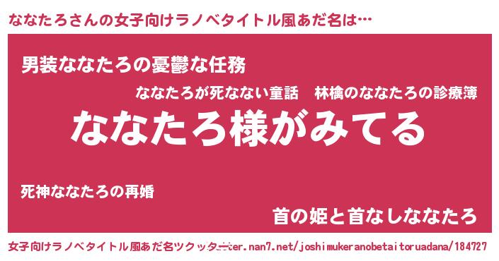 | ヒーロー風カッコイイあだ名 | 『天弓騎士ナナ』『仮面ナナダー』 |