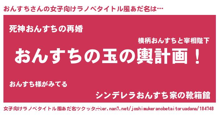 | 男性向けラノベタイトル風あだ名 | 『おんすち~年齢イコール彼女いない歴の魔法使い~』 |