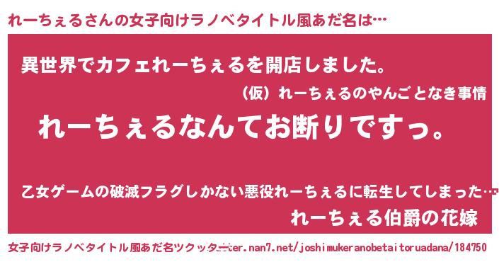 | 伝説のあだ名 | 『聞きしに勝る吟遊詩人れーちぇる』 |