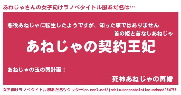 | 意味不明あだ名 | 『永久保存あねじゃ』『自称あねじゃ』 |