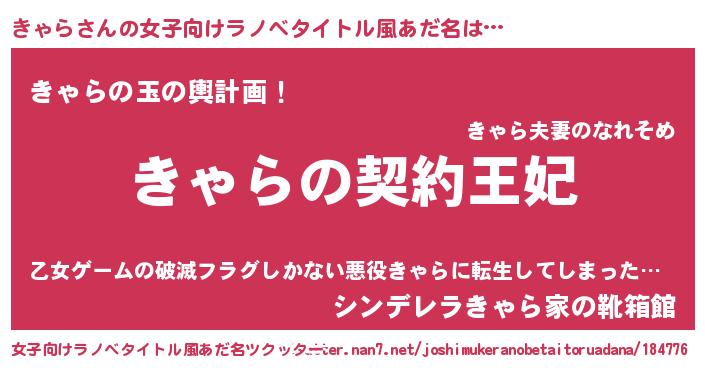| 胡散臭い通販商品みたいなあだ名 | 『来世でも幸せになれる健康食品…その名も「きゃら」』 |