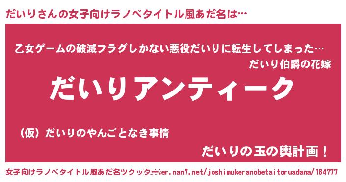 | 意味不明あだ名 | 『自称だいり』『住所不定無職だいり(81歳)』 |