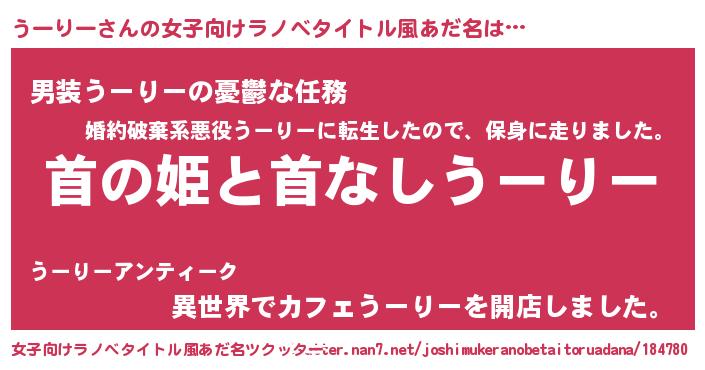 | 胡散臭い通販商品みたいなあだ名 | 『来世でも幸せになれる健康食品…その名も「うーりー」』 |
