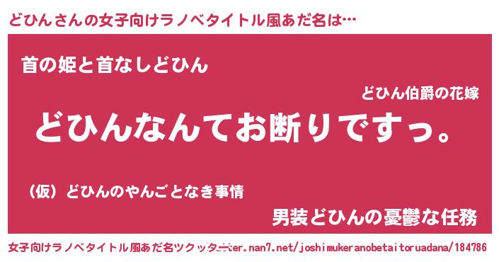 | 男性向けラノベタイトル風あだ名 | 『魔法科高校のどひん』『どひんの憂鬱』 |