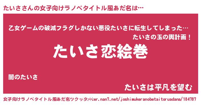 | ヘコむあだ名 | 『たいお』『たいさ(笑)』『なまこ酢』 |