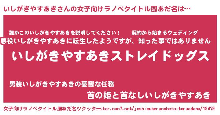 | 男性向けラノベタイトル風あだ名 | 『Re:いしがきやすあきから始める異世界生活』 |
