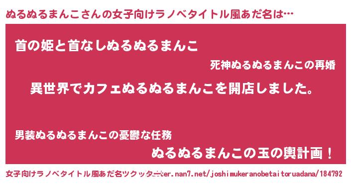 | ヒーロー風カッコイイあだ名 | 『ネオヌルヌルマンコ』『仮面ヌルダー』 |