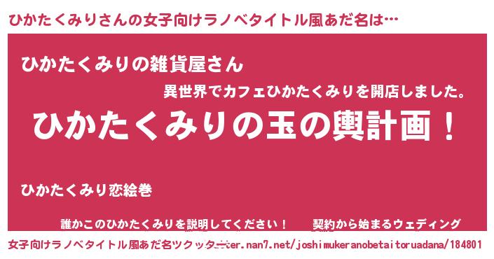 | 胡散臭い通販商品みたいなあだ名 | 『運命の人と巡り会える高級そうな皿…その名も「ひかたくみり」』 |