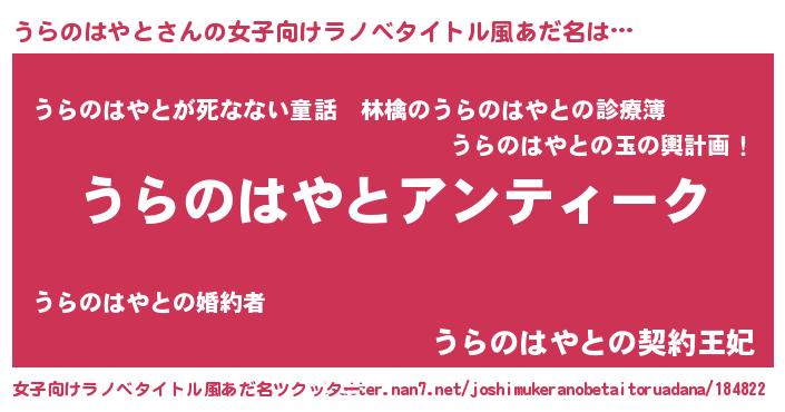 | 恥ずかしいあだ名 | 『ウラノハヤトデラックス』『うらちん』 |